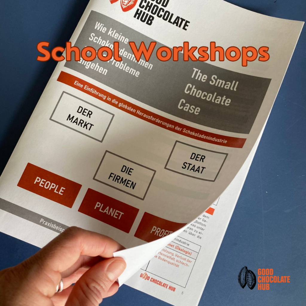 Der Good Chocolate Hub ist eine kleine, in der Schweiz ansässige NGO, die sich für eine gerechtere und nachhaltigere Kakaowertschöpfungskette engagiert. Unser Ziel ist es, Menschenrechtsverletzungen und Umweltprobleme wie Entwaldung im Kakaoanbau zu reduzieren und gleichzeitig positive Alternativen aufzuzeigen. Wir zeigen Konsument:innen, Schüler:innen, Pädagog:innen, politischen Entscheidungsträger:innen und Akteur:innen der Branche praxisnahe Lösungen und fundiertes Wissen, um eine ethischere Schokoladenwelt zu gestalten. Durch Bildungsarbeit, Sensibilisierung, Advocacy und Vernetzung schaffen wir Bewusstsein und konkrete Handlungsoptionen für verantwortungsvollen Genuss, den Schutz von Menschenrechten und Umwelt entlang der gesamten Schokoladenkette.